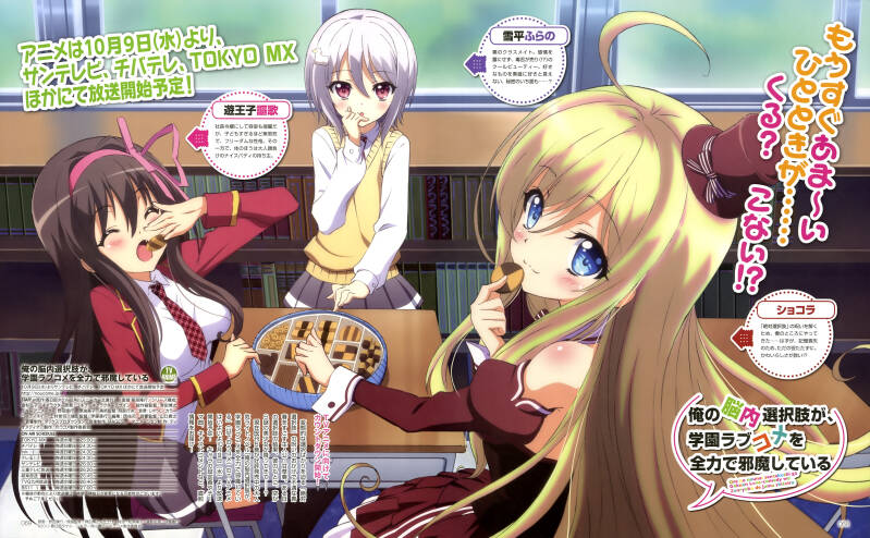 TITRE ORIGINAL : Ore no Nounai Sentakushi ga, Gakuen Lovecome o Zenryoku de Jama Shiteiru ANNÉE DE PRODUCTION : 2013 STUDIO : [DIOMEDEA] GENRES : [COMéDIE] [AMOUR & AMITIé] AUTEUR : [KASUKABE TAKERU] VOLUMES, TYPE & DURÉE : 10 EPS 25 mins
