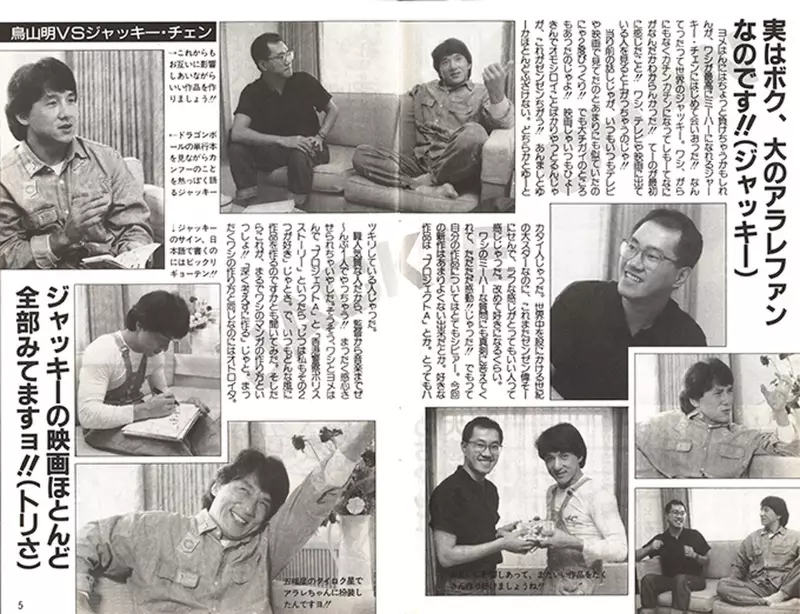 Toriyama offrit à Jackie Chan un dessin de lui pour son rôle dans le film Armour of god de 1986.
